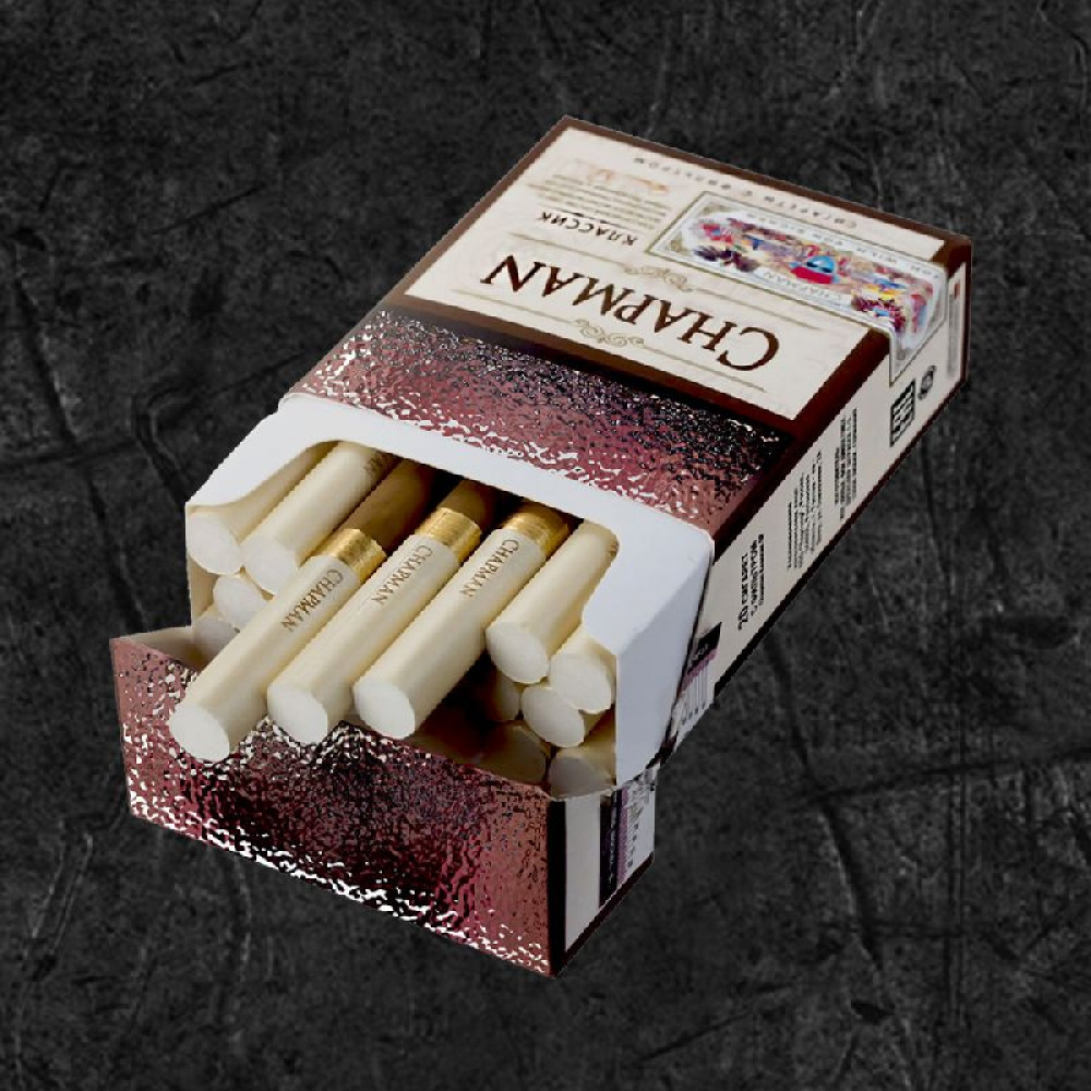 - Стильная упаковка: дизайн пачки сигарет Chapman выполнен в элегантной и минималистичной манере, идеально дополняющей образ современного человека.